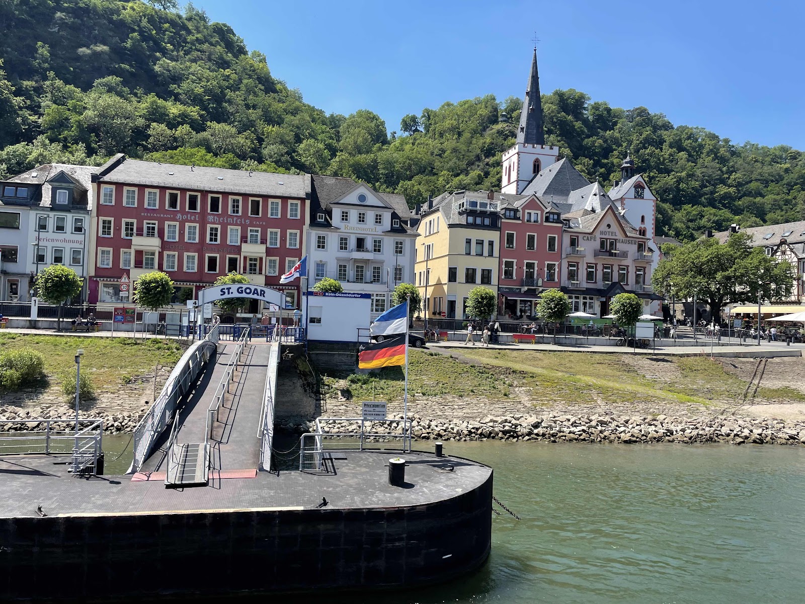 We slept in a little bit today. We’ve been going kind of hard each day and one of us mentioned that we need to start taking it just a little bit easier. Anyway, after a much-needed lie-in, we walked down into the center of the village and got some information about renting bicycles and taking a river cruise. After a little bit of deliberation we decided that the best bet would be to rent bicycles here, take a River cruise north from here to a town called Saint Goar, and ride the bicycles back.