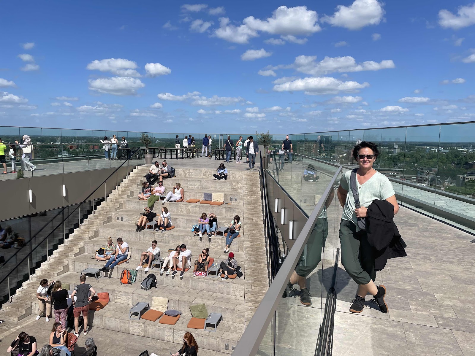 In the afternoon we headed into the city center of Groningan. It’s a city of about 200,000 people, one fourth of whom are university students. It really has a college town feel. There are plenty of places to eat and drink. We went to the top of one of the newest buildings in town, the Forum. The modern, well designed structure contains a library, study areas, coffee, beer/wine bar, movie theaters, childrens’ areas, and more. It was a fun stop.